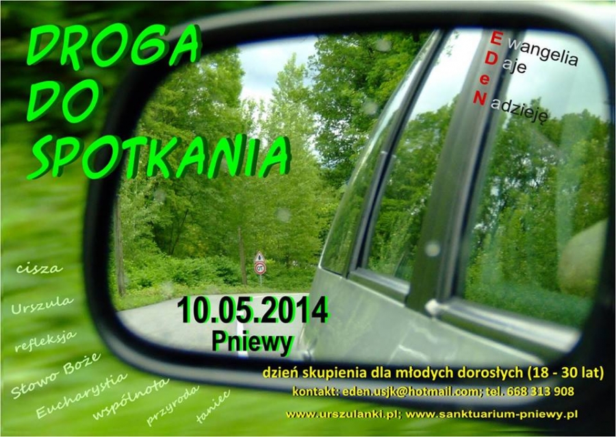 Swoją przygodę z urszulańskim EDeN-em rozpoczęłam w lutym tego roku, gdy przyjechałam na rekolekcje „Zawołaj mnie po imieniu”. Od tej pory regularnie uczestniczę w comiesięcznych dniach skupienia. Poznałam wielu wspaniałych ludzi, którym serdecznie dziękuję za ubogacenie mojej wiary. Ostatni dzień skupienia zatytułowany „Droga do Spotkania” ukazał mi, jaką jeszcze daleką drogę muszę pokonać, aby dotrzeć do celu. (…) Pochylając się nad ewangelicznym fragmentem „drogi do Emaus” zdałam sobie sprawę, że jestem taka, jak ci uczniowie – wprawdzie znam Pisma, lecz nie zawsze do końca jestem w stanie je zrozumieć lub im zawierzyć. Pomimo tego, że jest przy mnie Bóg i przemawia do mnie, często Go nie rozpoznaję i potrzebuje znaku, aby przejrzeć. (…) Dni skupienia, w których uczestniczyłam, pozwoliły mi na głębsze poznanie siebie oraz pozwoliły określić moje relacje względem Boga, świata i drugiego człowieka. Dzięki temu nie zatrzymuję się na pewnym etapie, lecz sprawiam, by ziarno wiary kiełkowało w moim sercu.