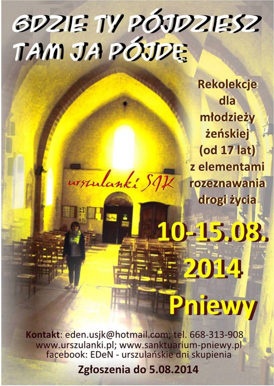 „Każde z tych pomieszczeń stawiało przed nami zadania, z którymi mierząc się, mogłam walczyć z własnymi słabościami czy lękami (często irracjonalnymi). Wykonywanie tych zadań pozwoliło mi oswoić się z trudnościami oraz towarzyszącymi im emocjami, dzięki czemu zamiast ucieczki od tego, co trudne, starałam się zmierzyć z wyzwaniem. Rekolekcje zmieniły całkowicie mój sposób myślenia. Pokazały mi, że każda najmniejsza trudność może posłużyć do naszego rozwoju. Szczególne podziękowania kieruję do Sióstr, które zorganizowały dla nas te rekolekcje oraz do dziewczyn, z którymi przez te kilka dni zbudowałyśmy wspólnotę. Dziękuję, za wspólnie spędzony czas, modlitwę, posiłki, śpiewy nad pniewskim jeziorem oraz wspólne rozmowy.”